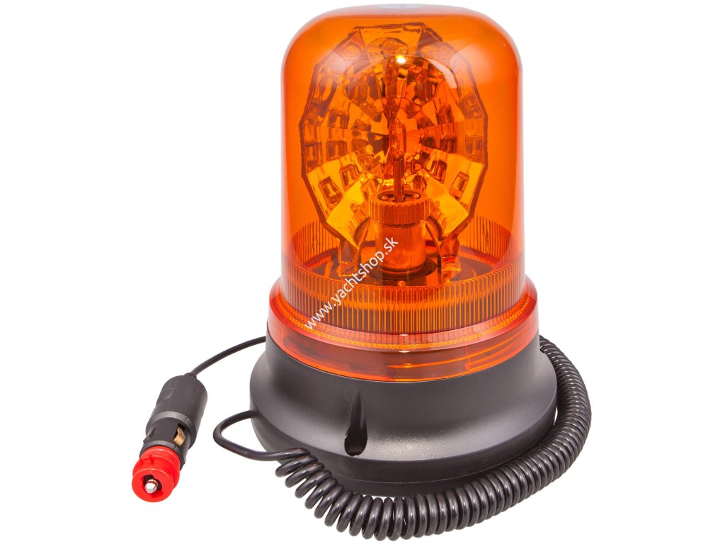 Maják výstražný oranžový s magnetickým úchytom. Napätie 12 Volt. Halogénová žiarovka H1 - 55/70 W Obsah balenia: špirálový kábel a zástrčka do zásuvky zapaľovača (H1 žiarovka nie je súčasťou balenia).