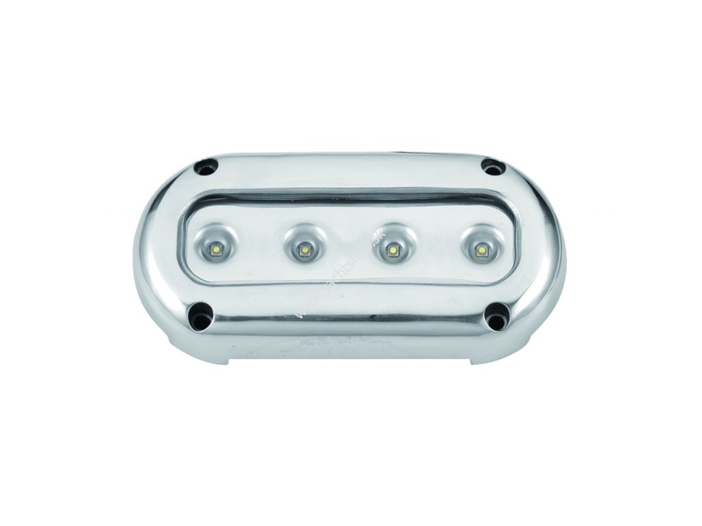 Podvodné LED svetlo4 x 3W, z nehrdzavejúcej ocele AISI 316. Studené svetlo. Montáž pod omietku.Trvanie 50000 hodín. Dodáva sa s 1,5 m káblom. Vodotesnosť IP68. Svetlo 5500-6300 Kelvinov. Inštalácia pod čiarou ponoru. (Zabezpečte priechod vody medzi svetlom a trupom pre správne chladenie svetla)