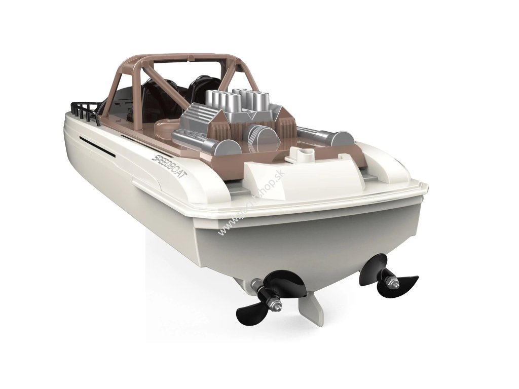 Menšie detaily, ako sú dve postavy vodiča chránené ochranným rámom alebo aplikácia motora vzadu s výkonnými osemvalcami a dvoma výfukovými rúrami, podčiarkujú celkový elegantný charakter. S ušľachtilou hnedou a krémovo bielou táto RC pretekárska loď vyčarí pôsobivú postavu na jazere, rybníku alebo v bazéne, keď je vhodné počasie.