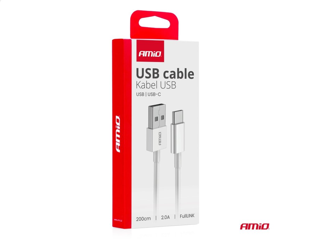 AMIO Kábel USB na USB-C, 2A, 200 cm, FullLINK