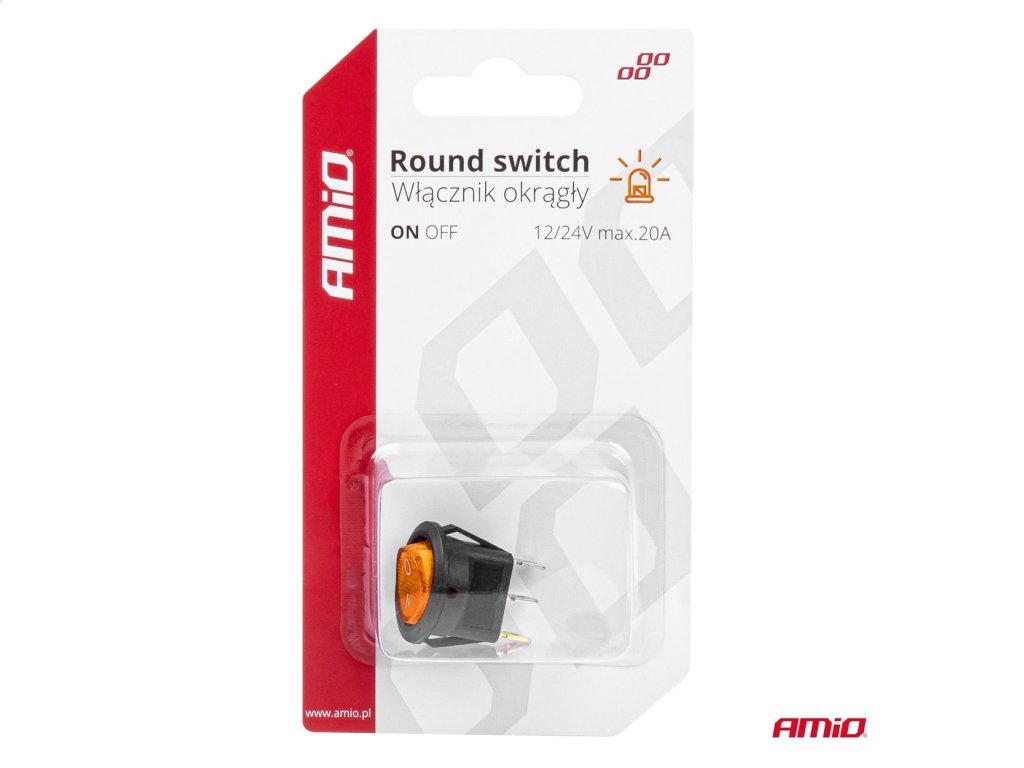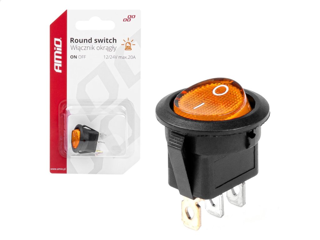 AMIO Prepínač kolískový okrúhly s oranžovým podsvietením