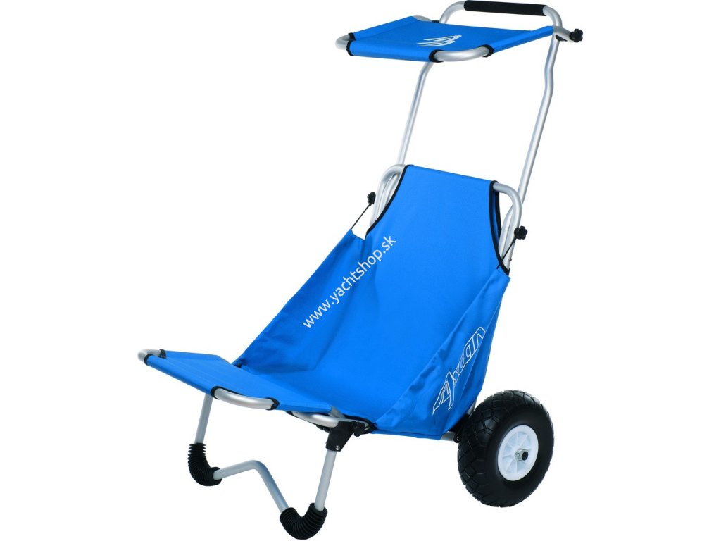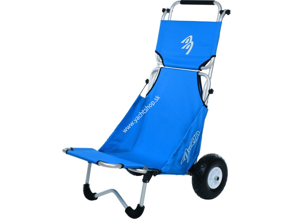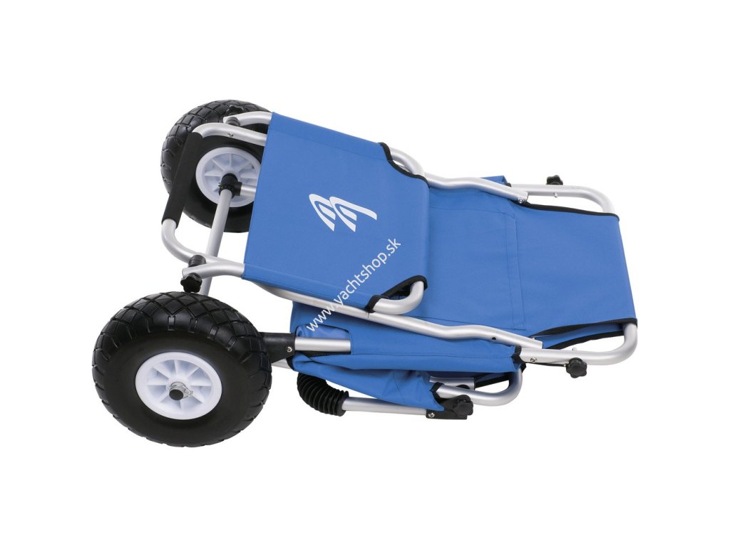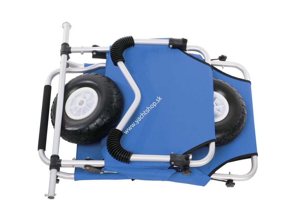 Je ľahko zložený a zaberá málo miesta v kufri auta alebo v skrinke. Kolesá sú rýchlo odmotovateľné, zaistené sú kolíkmi s rýchlym uvoľňovaním. Dopravný buggy, ktorý je spracovaný vysoko kvalitne a je super praktický. Na jednej strane môžete nakladať 50 kg a napríklad rýchlo a ľahko prepravovať svoju športovú batožinu. Na druhej strane môžete tiež použiť túto plážovú buggy ako sedadlo (tu je jej maximálna hmotnosť 100 kg). Ďalšie dôležité prvky: jeho kolesá - sú obzvlášť široké, odolné proti prepichnutiu a sú vyrobené z PU (šírka: 8,4 cm); Má ľahký, pevný a nerezový hliníkový rám a robustná dvojitá nylonová tkanina.