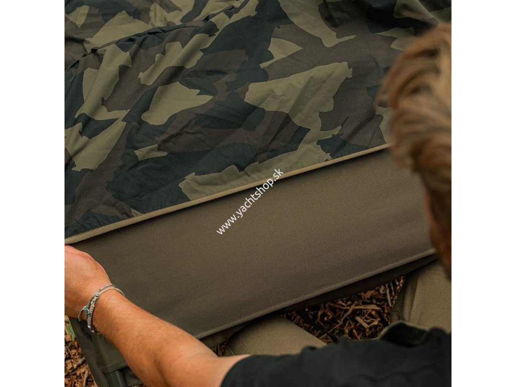 - Systém popruhov a pracky umožňuje kompaktné zbalenie postele aj so spacákom