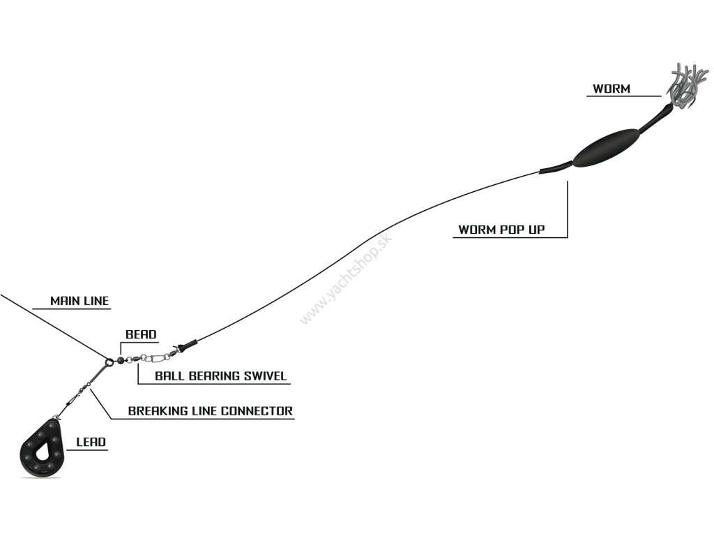 Waller Spezial ready-made leader od Stefana Seußa. Worm Pop Up Rig je ideálny na atraktívnu prezentáciu hŕby červov tesne pri dne v stojatých a pomaly tečúcich vodách. Medzi plavákom a trojhákom je umiestnená tuhá hadička, ktorá funguje ako ramienko a zabraňuje krúteniu. Worm Pop Up Rig je ideálny pre rybárov loviacich na brehu, ktorí chcú nahodiť svoje montáže na rieke alebo jazere.Dodatočné parametre