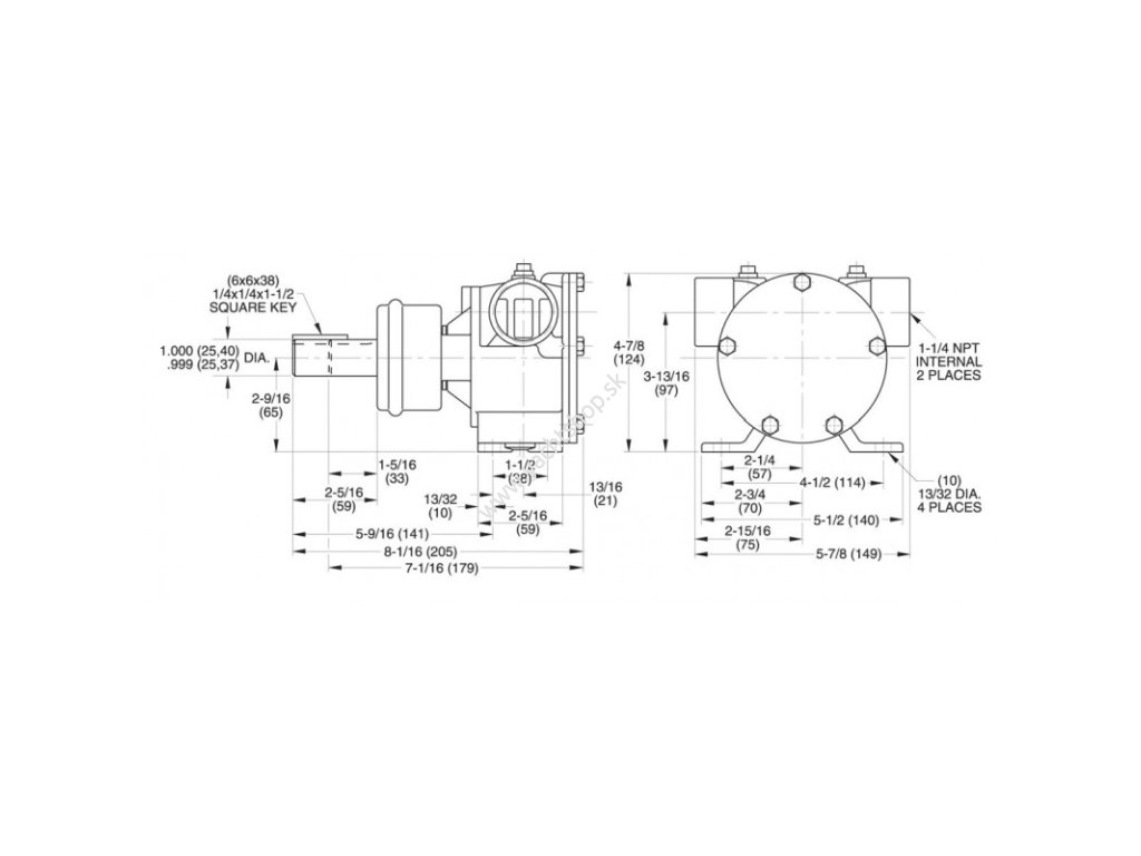 Odolné a univerzálne bronzové čerpadlo na chladenie motora s 1-1/4" (32 mm) otvormi, s neoprénovým obežným kolesom, vhodné na čerpanie vody aj na všeobecné použitie. S menovitým prietokom 235 l/min pri 1750 ot/min zvládne toto čerpadlo aj tie najnáročnejšie chladiace aplikácie. Môže sa plniť pri nízkych alebo vysokých otáčkach a zvládne aj vertikálnu výšku suchého nasávania až do 6,7 m (22 stôp) za 30 s.Dodatočné parametre