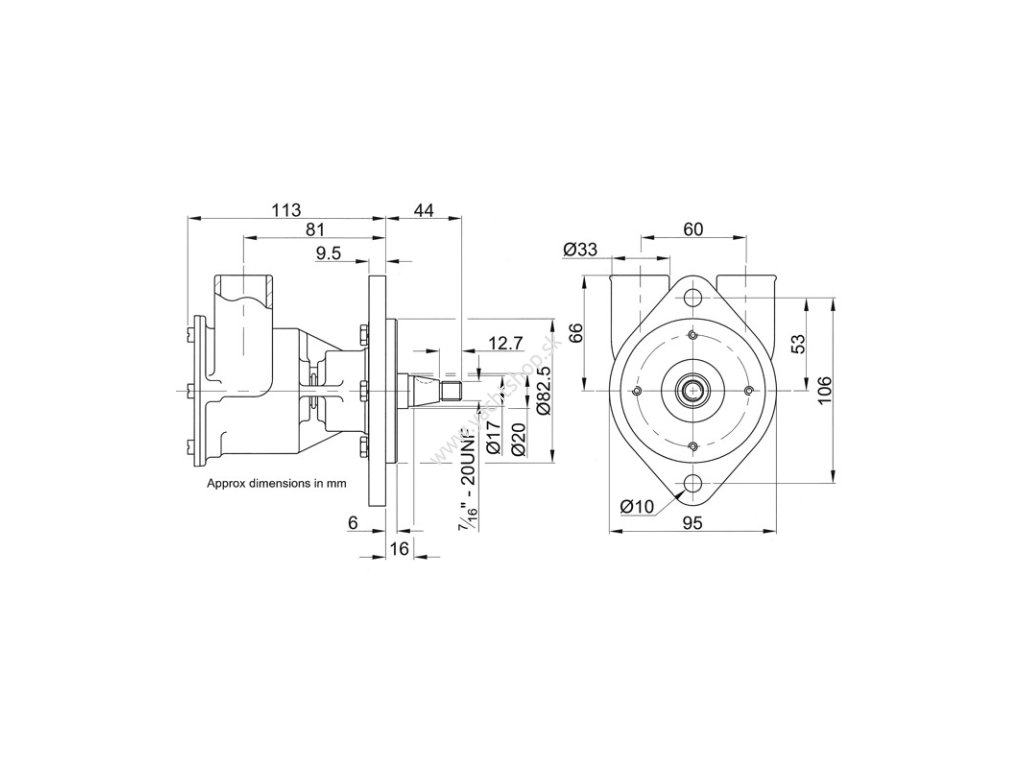 Samonasávacie čerpadlo Jabsco na chladiacu vodu, vyrobené z bronzu.Čerpadlo veľkosti 80 s prípojkami pre 32 mm (1 1/4") potrubia.Dodatočné parametre