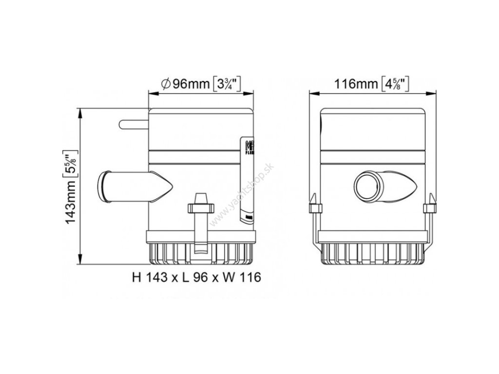Ponorné čerpadlo na vyprázdňovanie podpalubia. Plášť z robustného ABS odolného proti nárazom, odolného proti korózii a elektrolýze.Dodatočné parametre