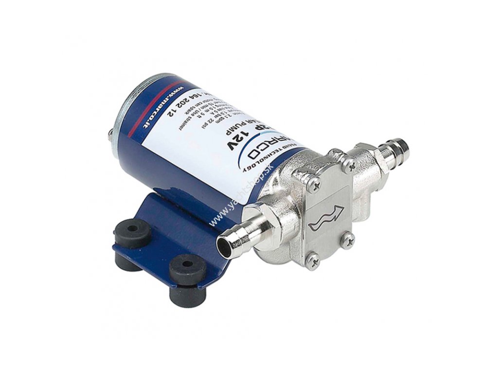 Samonasávacie elektrické čerpadlo s bronzovými prevodmi na prečerpávanie kvapalín. Teleso čerpadla z poniklovanej mosadze a hriadeľ z nehrdzavejúcej ocele. Porty s mosadznými prípojkami pre rúrky s vnútorným priemerom Ø12 mm. Hlavné použitie: prečerpávanie nafty, nemrznúcej zmesi.Dodatočné parametre