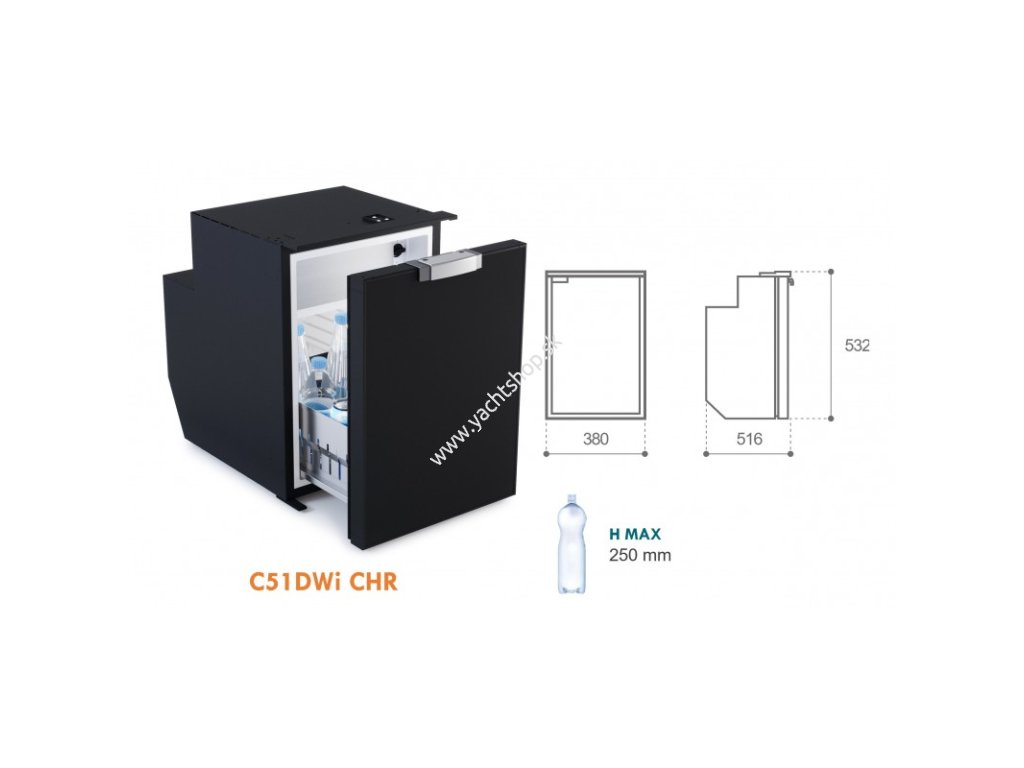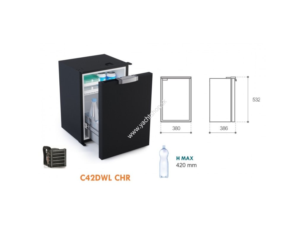 Vyrába sa s hrubšími, ale ľahšími dverami s rovnakou plochou a celkovým výklenkom, s hladkým a elegantným bočným profilom 42 mm. S matným čiernym panelom a povrchovou úpravou soft-touch odolnou proti poškriabaniu. Systém Chromelock umožňuje bezpečné uzamknutie dverí aj počas intenzívneho používania lode. Kľučka dverí je vybavená inovatívnym integrovaným systémom polohy vetrania, ktorý umožňuje čiastočné otvorenie počas obdobia nečinnosti. Táto funkcia nielenže zabraňuje tvorbe plesní a nežiaducich pachov, ale prispieva aj k optimálnemu skladovaniu vašich potravín. Kompletne vybavená LED svetlom.Dodatočné parametre