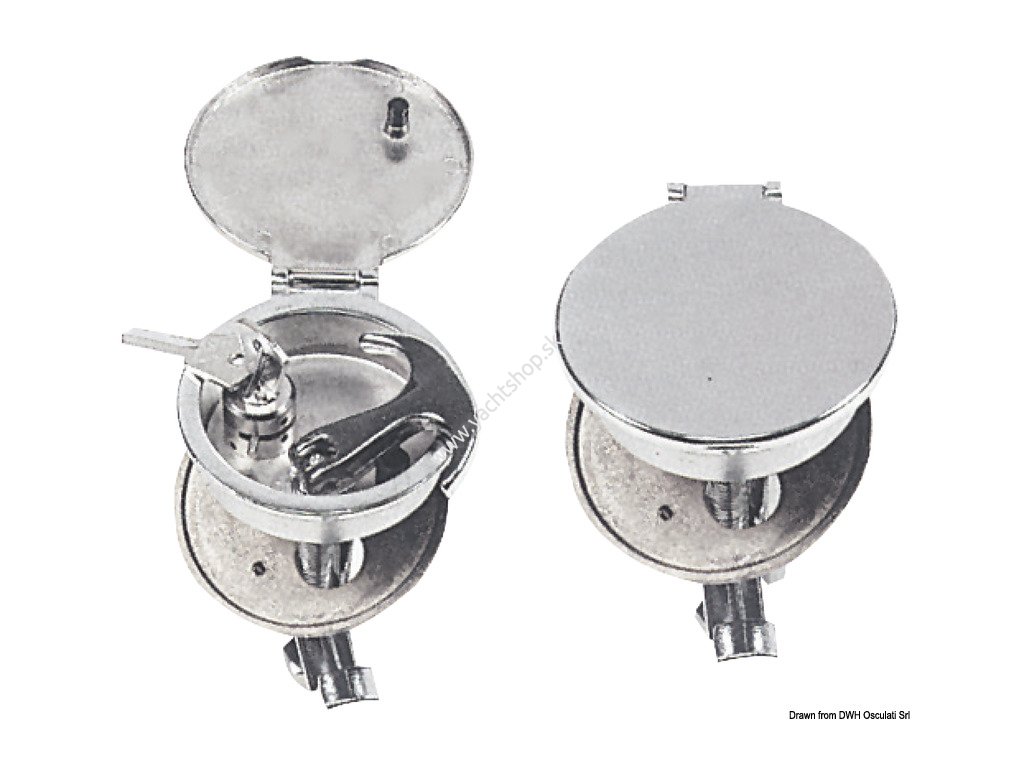 Vyrobené z pochrómovanej mosadze, zapustené, vybavené uzamykacím krytom. Vybavené spodnou zátkou s nastaviteľnou výškou od 50 mm do 5 mm.Dodatočné parametre