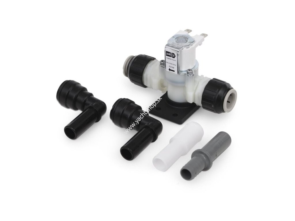 In-line elektromagnetický ventil s vnútorným vstupným filtrom. Dvojitý regulačný ventil na ochranu pred kontamináciou pitnej vody. Môže byť namontovaný v ľubovoľnej orientácii, nad alebo pod toaletou. obsahuje : montážnu konzolu, 1 x 15 mm x 1/2 (13 mm) hadicovú spojku JG Speed Fit (vstup), 1 x 15 mm x 3/4 (19 mm) hadicovú spojku JG Speed Fit (výstup). kompatibilný s toaletami Jabsco série 37055, 37045, 37075, 58XX0Dodatočné parametre