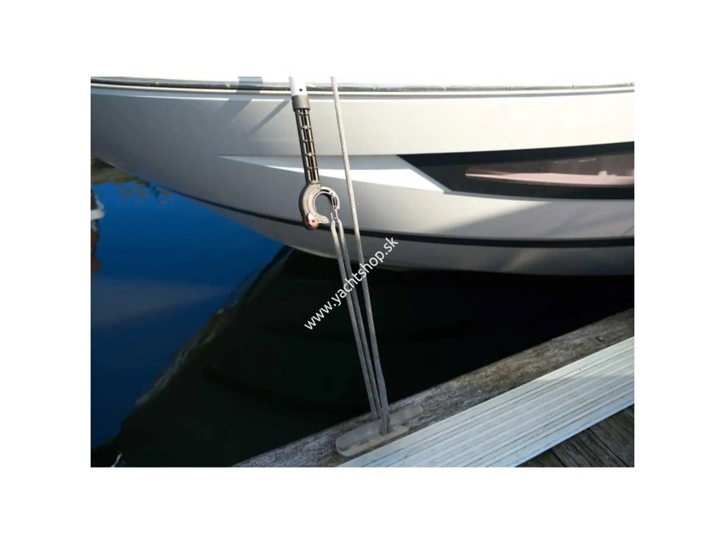 * Upozorňujeme, že tento hák na loď nie je vhodný na unesenie hmotnosti lode a nemal by sa na taký používať. Minimálna veľkosť kotviaceho krúžku: priemer 35 mm.