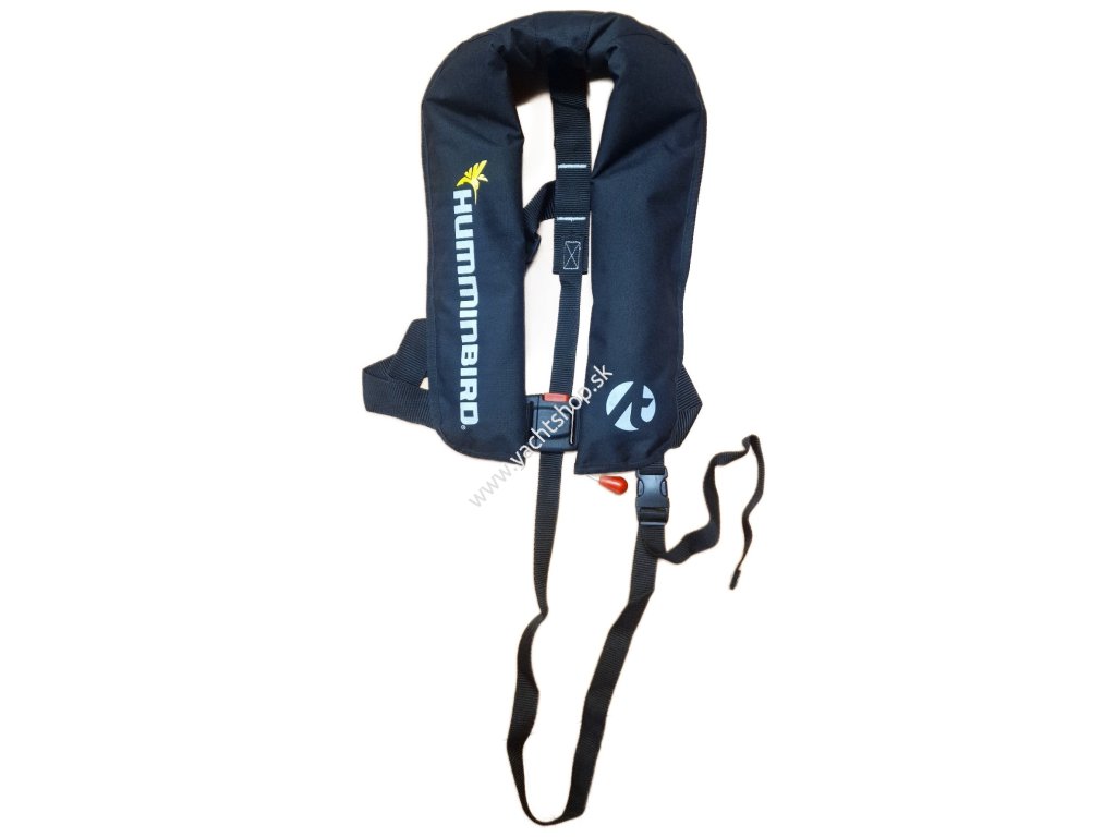LADE OÜ Automatická záchranná vesta 150N Classic Waistbelt/ UML MK5 čierna s logom HUMMINBIRD + ATLANTIS Šiltovka RAPPER BLACK s logom HUMMINBIRD.