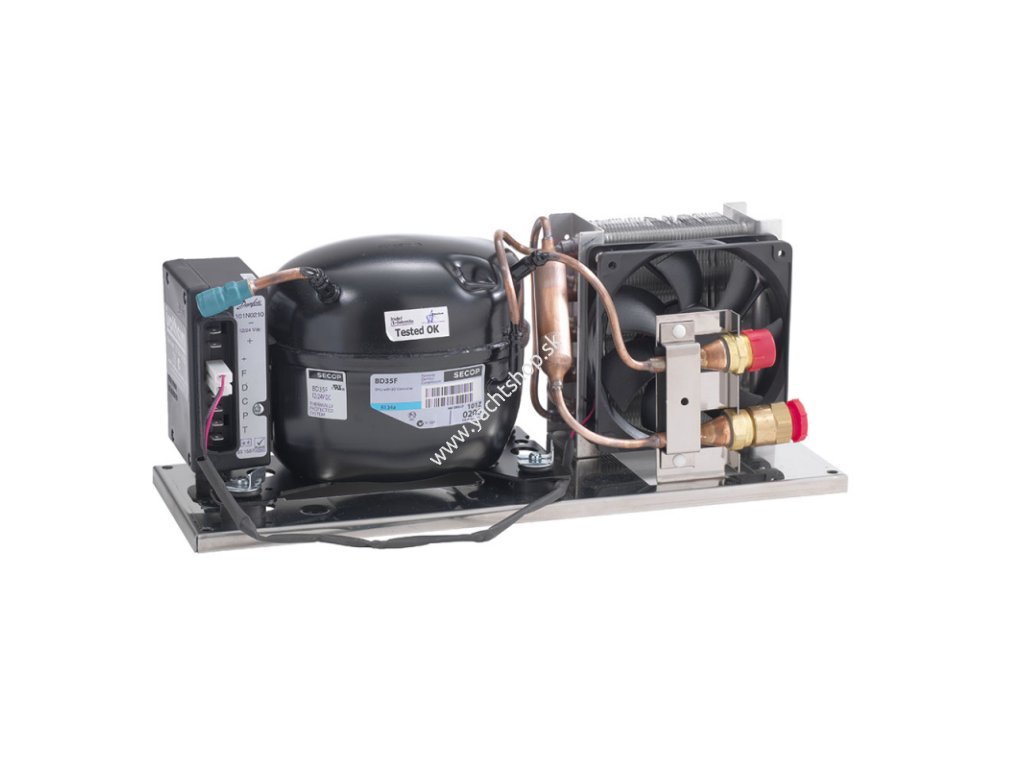 KOMPAKTNÉ vzduchom chladené jednotky GEna premenu dobre izolovaných skriniek na chladničky alebo mrazničky. BD35F Secop hermetický kompresor (ex Danfoss) elektronicky regulovaný termostatomšpecifický, chladí plochý typ výparníka inštalovaný vo vnútri vrcholu. napájanie 12 / 24 V. Sú už naplnené plynom a vybavené rýchlospojkamipripojenie