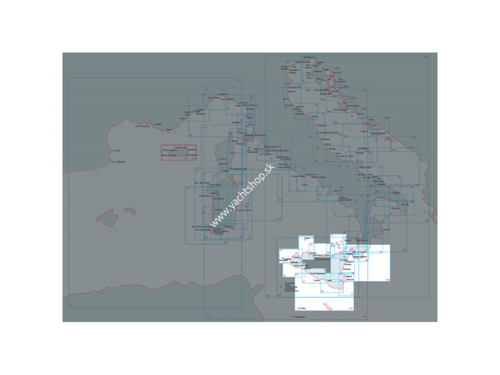 Námorná mapa Istituto Idrografico della Marina, s mierkou mapy 1: 100 000, vytlačená na papieri s rozmermi 83 x 116 cmDodatočné parametre
