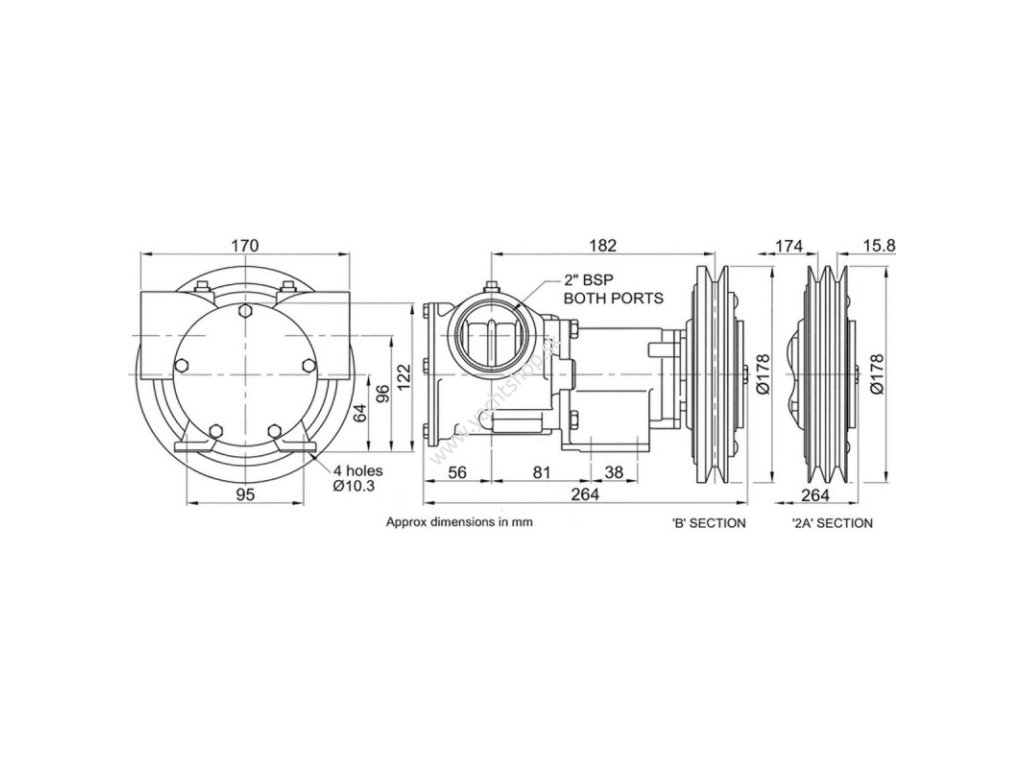 Samonasávacie elektromagnetické trecie čerpadlo z bronzu s pružným neoprénovým obežným kolesom, pre náročné aplikácie s uhlíkovou/keramickou mechanickou upchávkou. 2 palce, 24 V.Dodatočné parametre