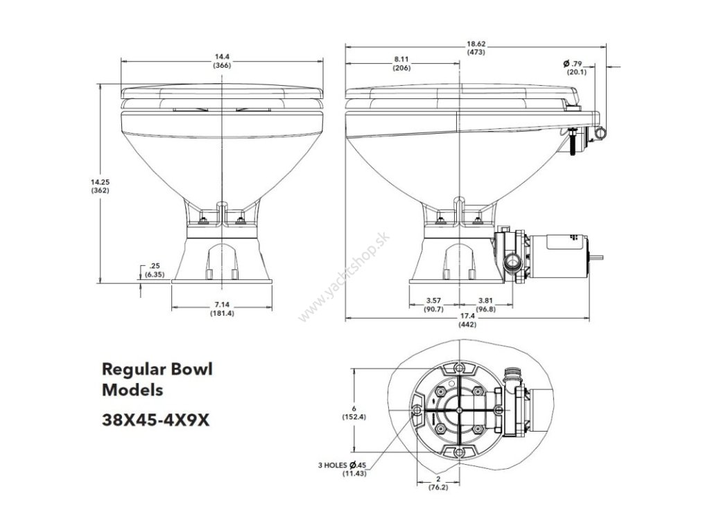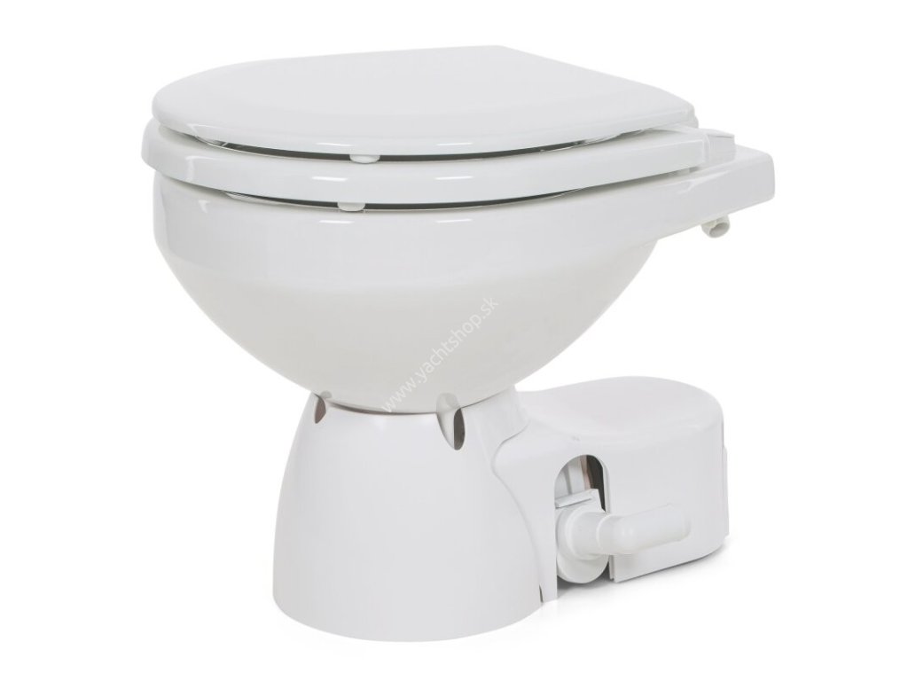 Vysokoúčinná elektrická toaleta Jabsco so splachovaním čerstvou vodou, spotreba vody približne 1-2 l na jedno spláchnutie. Možno pripojiť na akýkoľvek tlakový vodovod s prietokom min. 11 l/min. Elektromagnetický ventil s dvojitou spätnou klapkou na ochranu pred znečistením pitnej vody. Výkonné odstredivé vypúšťacie čerpadlo na rozbitie a odčerpanie odpadu z toalety pomocou 25 mm (1") hadice. Vyrobené z bielej keramiky v kompaktnej veľkosti. vrátane: Solenoidový ventil s rýchlospojkami: Vstup 15 mm (1/2"), výstup 19 mm (3/4"), odpadové čerpadlo 25 mm (1") v priamom vyhotovení a s 90° ohybom, hadicový adaptér na pripojenie k odpadovému potrubiu 38 mm (1-1/2") a ovládací panel s Blackboxom: Výška 36,2 cm / šírka 36,6 cm / hĺbka 47,3 cmDodatočné parametre