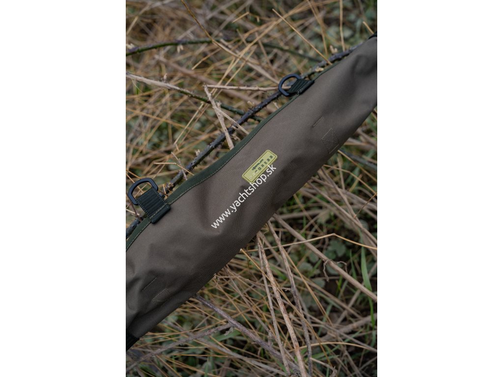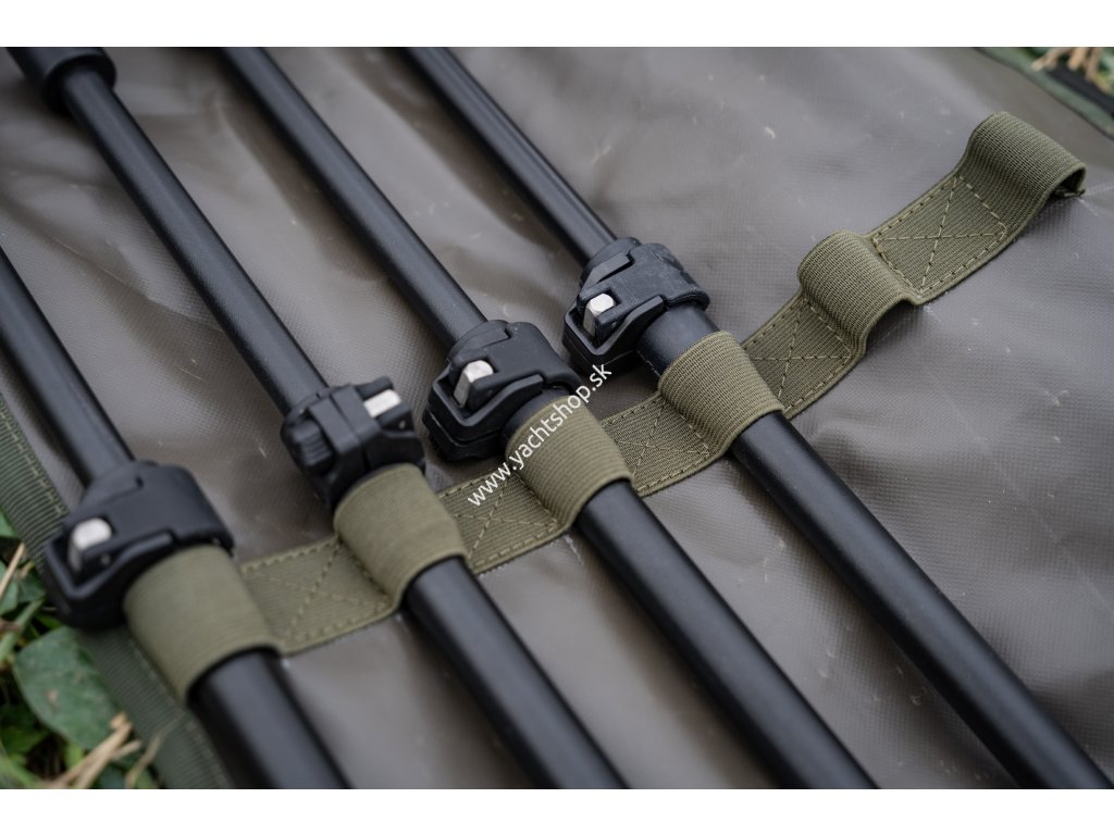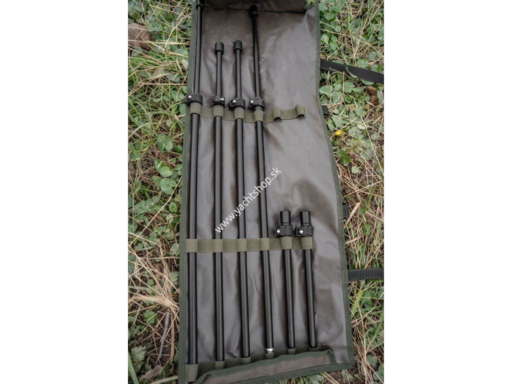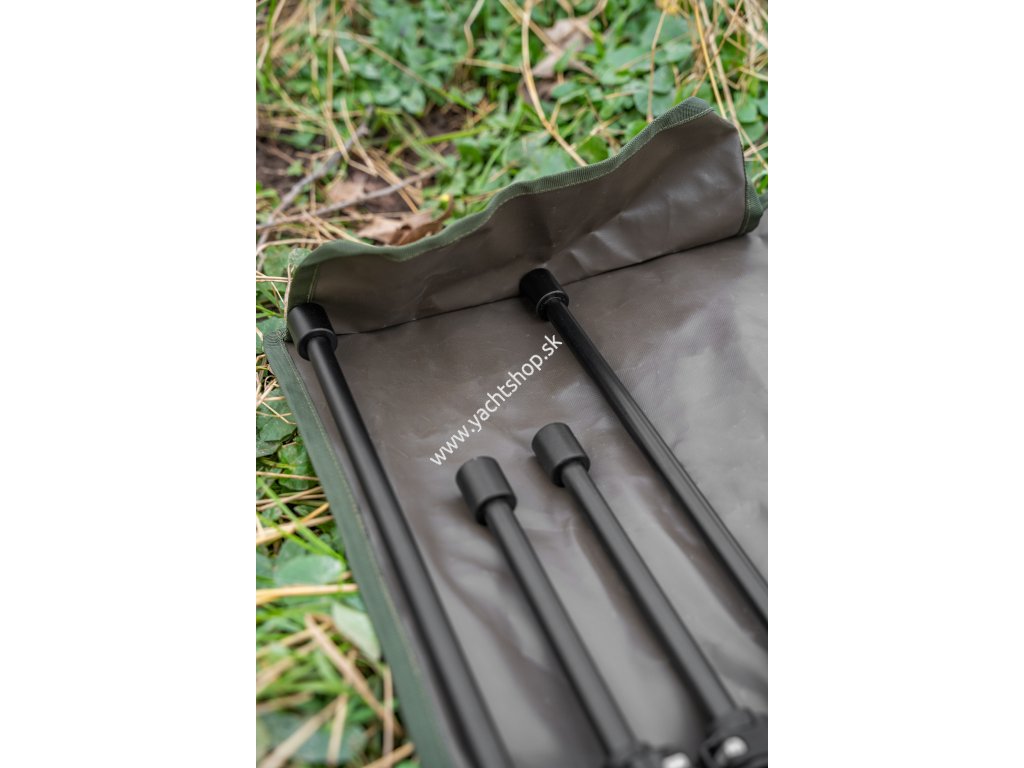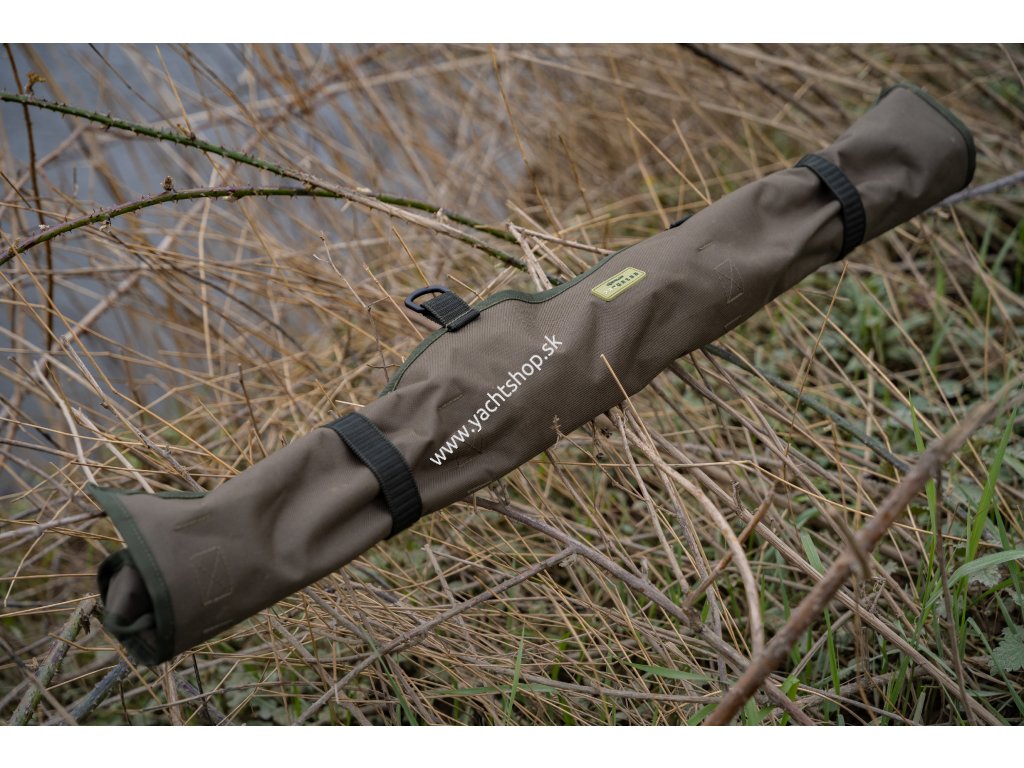 Táto kompaktná konštrukcia vám umožní ľahko prenášať až šesť bankových prútov s budíkmi alebo opierkami na prúty. Každý bankstick je uchytený pomocou elastických pútok a je uzavretý v úhľadnom zvitku pomocou dvoch popruhov. Kompletný s dvomi pútkami D na jednoduchú prepravu na batožine Korum. Vyrobené z odolného materiálu 600D PVC na čistenie utieraním. Rozmery 90 cm x 35 cm.Dodatočné parametre
