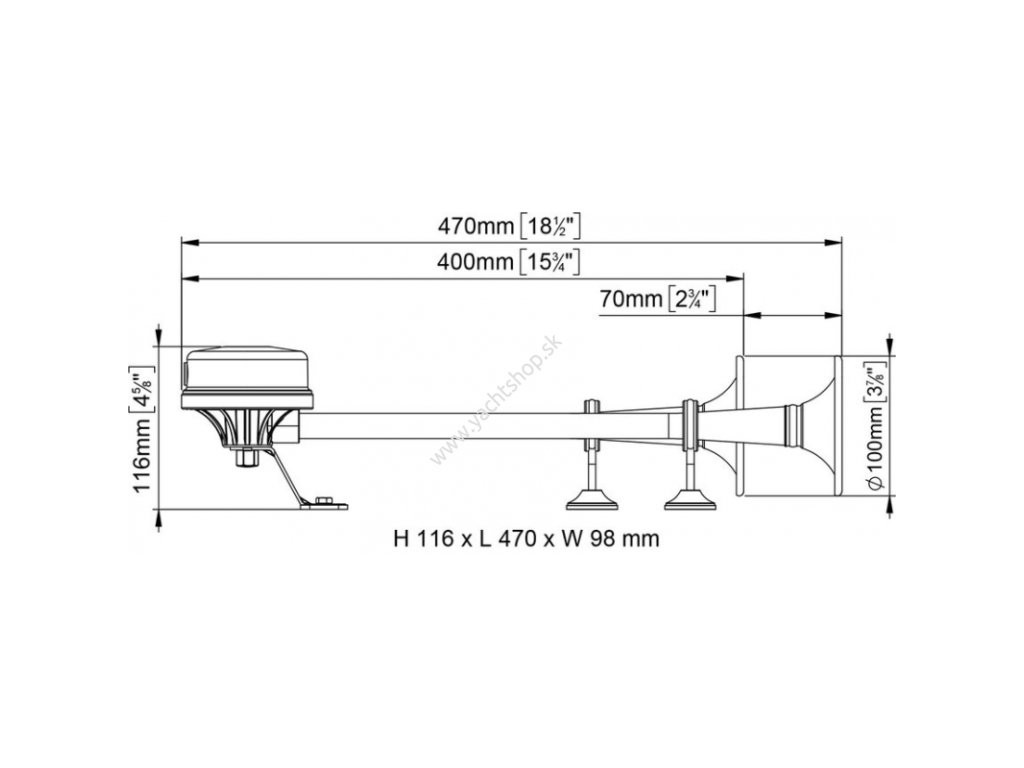 OSCULATI Ekologický klaksón na stlačený vzduch 100 Db Eco-friendly compressed air horn 100 Db