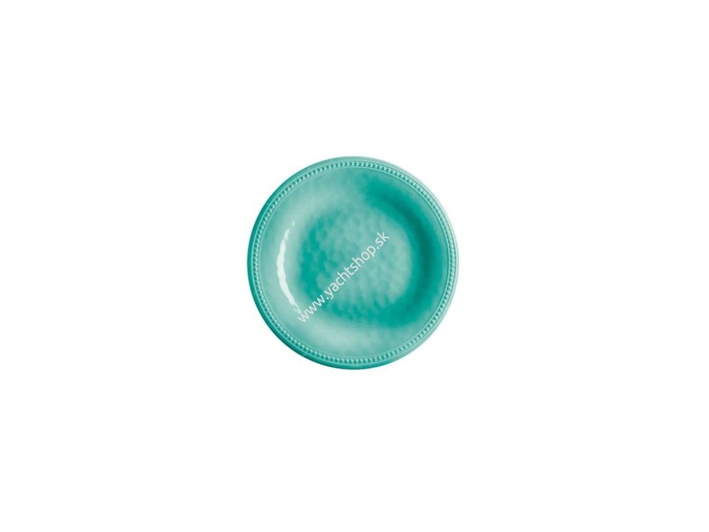 HARMONY Acqua dezertný tanier. Melamínový tanier s jednoduchým a elegantným dizajnom má jemný reliéf, vďaka ktorému vyzerá ako terakota. Na okraji je svetlý dekor, ktorý dodáva riadu jemný vzhľad. Je odolný proti rozliatiu a možno ho umývať v umývačke riadu.Dodatočné parametre