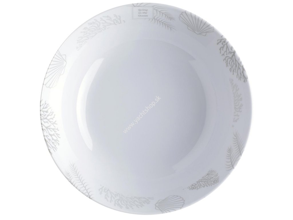 Riad vyrobený zo 100 % melamínu, bez obsahu PBA. V odtieňoch tmavomodrej a béžovej farby, zdobené vzormi koralov a mušlí. Vhodné do umývačky riadu. Riad, šálky a poháre majú na dne protišmykový krúžok, ktorý zabraňuje ich kĺzaniu po stole.Dodatočné parametre