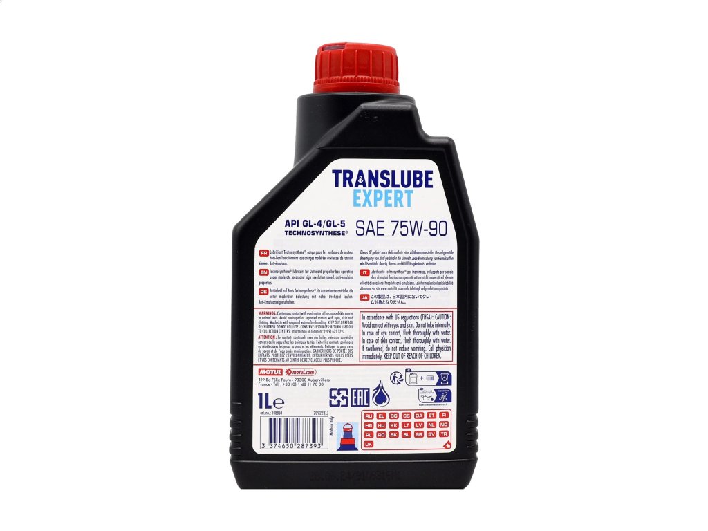 MOTUL Translube Expert je špičkový antiemulzný prevodový olej navrhnutý špeciálne pre mazanie vonkajších lodných motorov vystavených extrémnemu zaťaženiu vrtuľou. Poskytuje maximálnu ochranu prevodovky aj v náročných podmienkach, kde dochádza k otrasom, vysokému tlaku a výrazným zmenám otáčok.