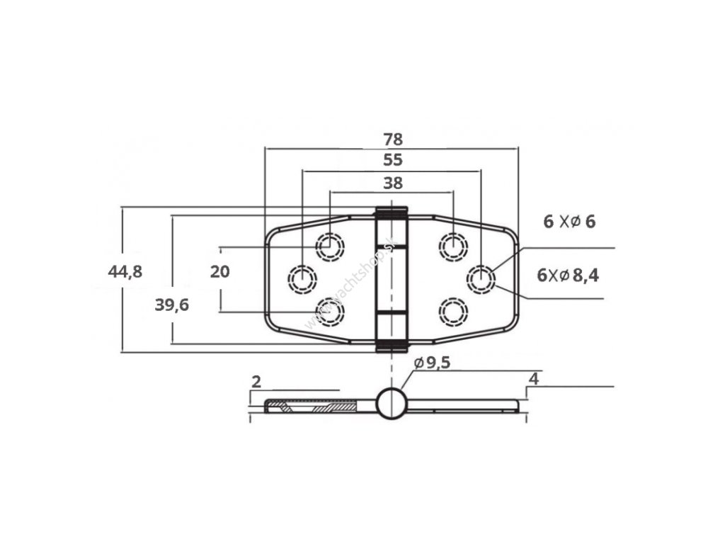 Záves s krytom AISI 316. Po montáži zostanú skrutky závesu skryté, čo má veľký estetický účinok.Dodatočné parametre