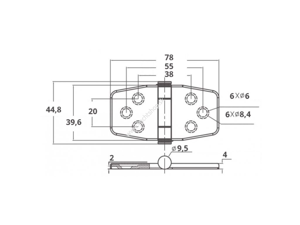 Záves s krytom AISI 316. Po montáži zostanú skrutky závesu skryté, čo má veľký estetický účinok.Dodatočné parametre