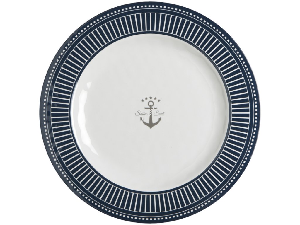 Riad vyrobený zo 100 % melamínu, bez BPA. V odtieňoch námorníckej modrej a bielej farby má kladivkový dizajn, ktorý pôsobí dojmom porcelánu. Vhodné do umývačky riadu.Dodatočné parametre