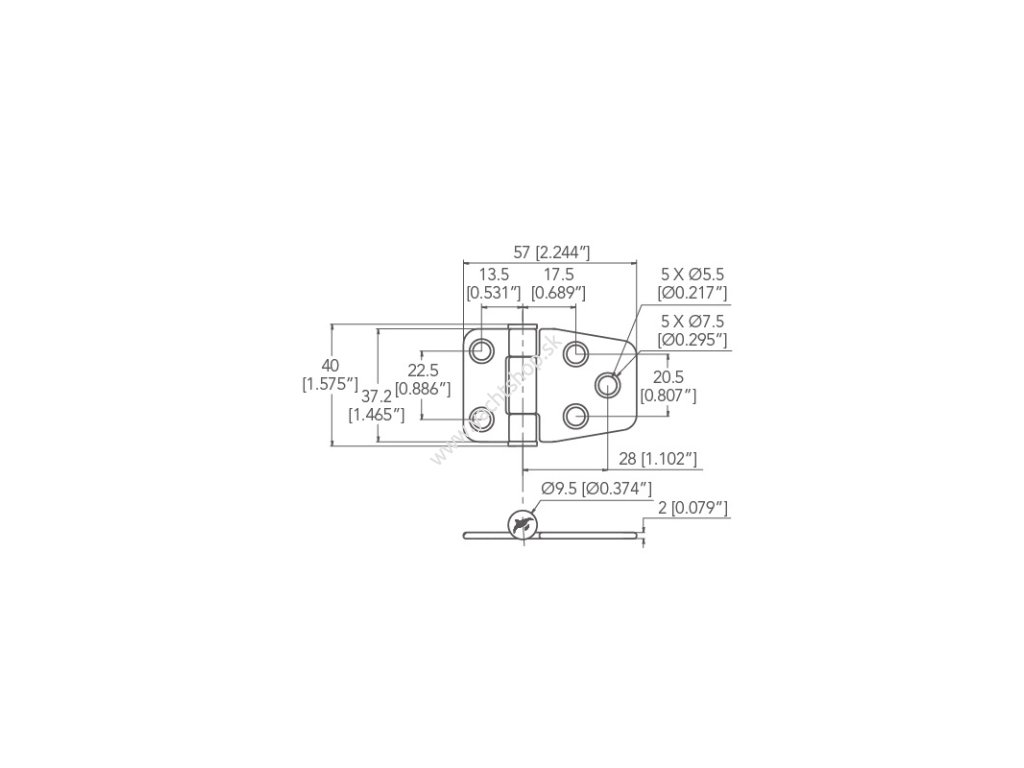Trecie závesy z nehrdzavejúcej ocele AISI 316, antivibračné, hrúbka mm.2, Ø stredového valca mm.9,5. Držia dvere otvorené v akomkoľvek uhle bez nastavenia krútiaceho momentu.Dodatočné parametre