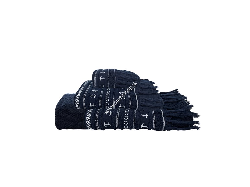 Súprava uterákov vyrobená z vysokokvalitného froté zo 100 % bavlny 550 g. Zamatové na dotyk, s textúrami a výšivkami, uteráky na tvár, do sprchy a na bidet z tejto elegantnej kolekcie sú ideálne na dodanie ľahkého námorníckeho nádychu do kúpeľne na každej lodi. Rozmery 33X50 - 50X100 - 70X140 cm.Dodatočné parametre
