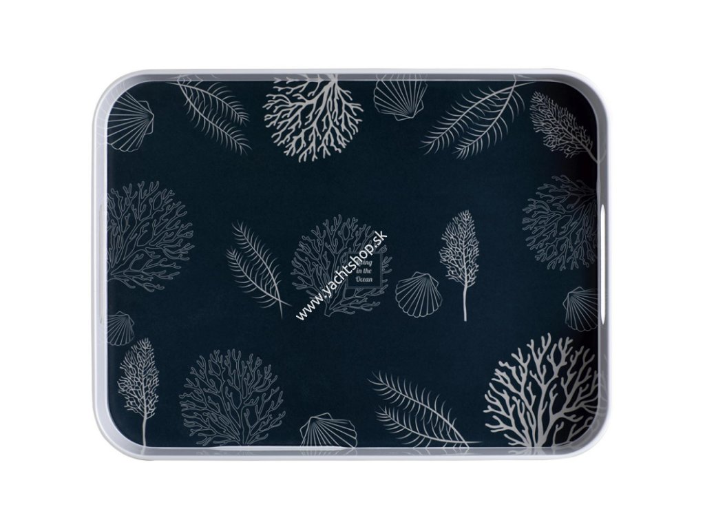 Riad vyrobený zo 100 % melamínu, bez obsahu PBA. V odtieňoch tmavomodrej a béžovej farby, zdobené vzormi koralov a mušlí. Vhodné do umývačky riadu. Riad, šálky a poháre majú na dne protišmykový krúžok, ktorý zabraňuje ich kĺzaniu po stole.Dodatočné parametre