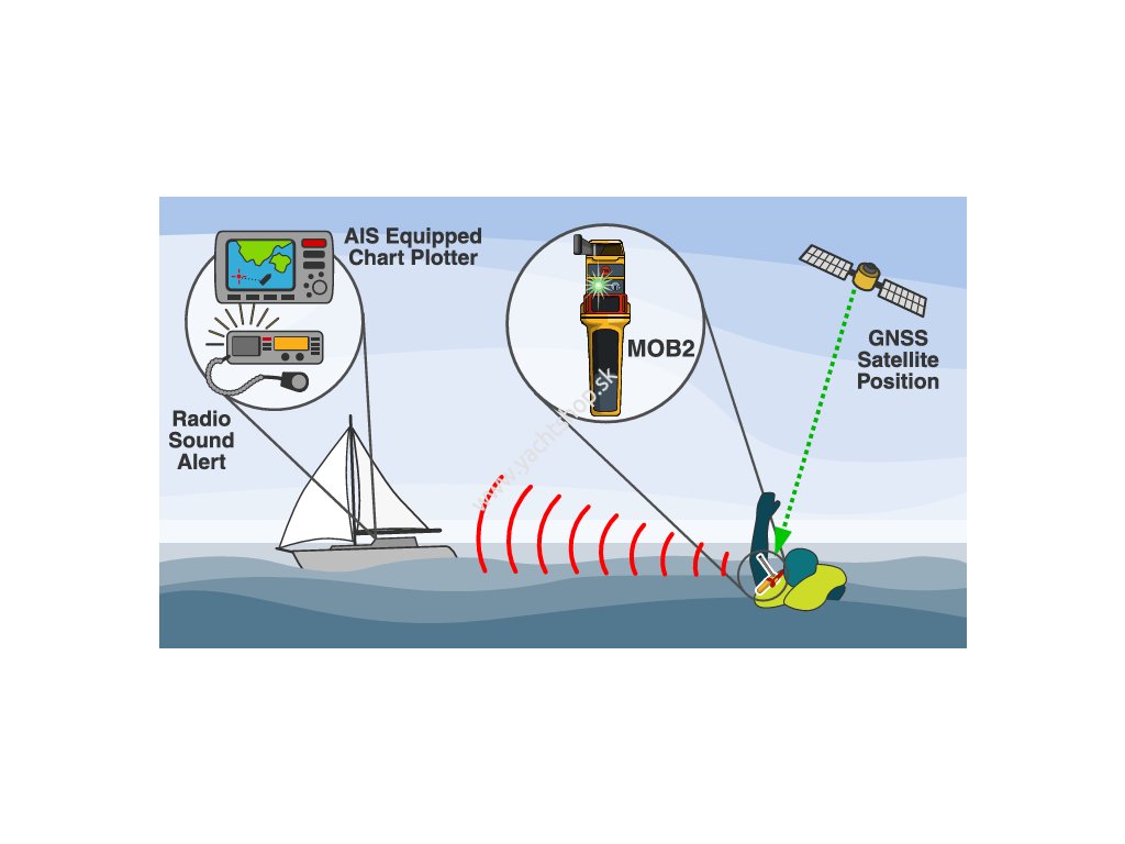 MOB2 okamžite prenesie vašu polohu prostredníctvom AIS a aktivuje tiesňové volanie DSC na VHF rádiu vášho plavidla – čím poskytne rýchle lokálne upozornenie posádke a blízkym plavidlám. -