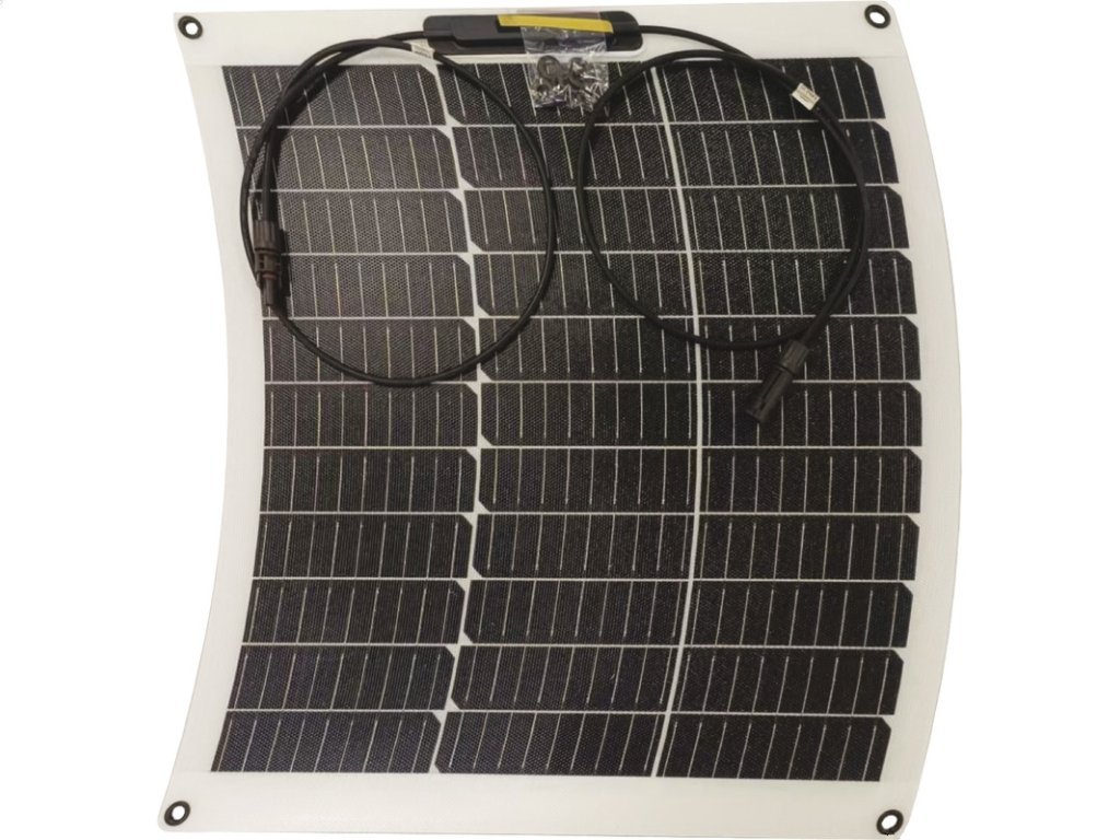 Vysoko výkonná technológia solárnych článkov pre letecký priemysel. Najmodernejšie ultratenké a ultraflexibilné panely. Účinnosť jedného článku 23 %. Sendvičové panely pozostávajúce z plastového nosiča + solárnych článkov + povrchovej úpravy z epoxidovej živice odolnej voči UV žiareniu. Upevnenie pomocou obojstrannej pásky. Pripojovací kábel a zástrčka MC4 súčasťou balenia.