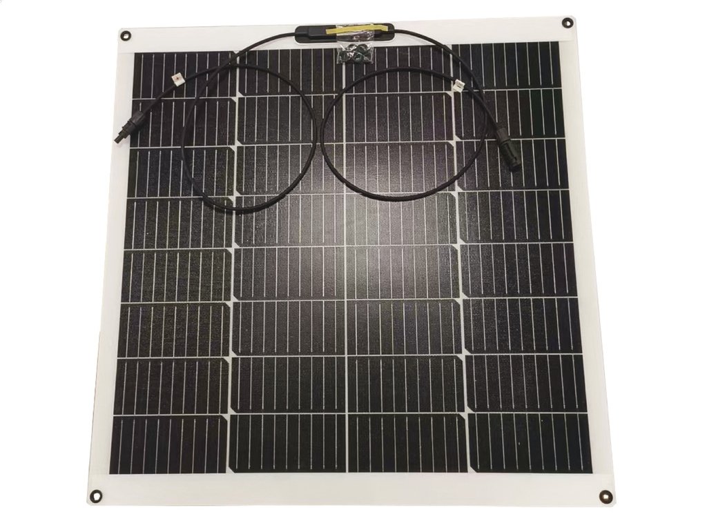 Vysoko výkonná technológia solárnych článkov pre letecký priemysel. Najmodernejšie ultratenké a ultraflexibilné panely. Účinnosť jedného článku 23 %. Sendvičové panely pozostávajúce z plastového nosiča + solárnych článkov + povrchovej úpravy z epoxidovej živice odolnej voči UV žiareniu. Upevnenie pomocou obojstrannej pásky. Pripojovací kábel a zástrčka MC4 súčasťou balenia.