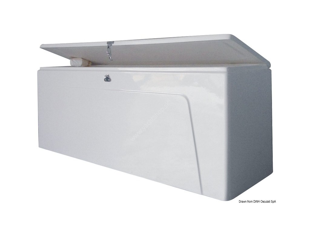 Vyrobená z bieleho VTR, vybavená závesmi z nehrdzavejúcej ocele a chrómovaným mosadzným pákovým zámkom. Vhodný aj ako odkladací priestor na inštaláciu v doku, pred loďou.Dodatočné parametre