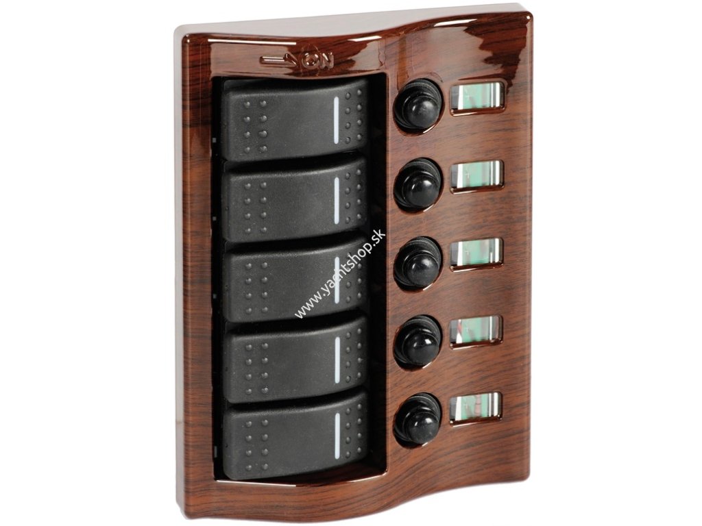 OSCULATI Ovládací panel 5 kolískových prepínačov potiahnutý mahagónom.