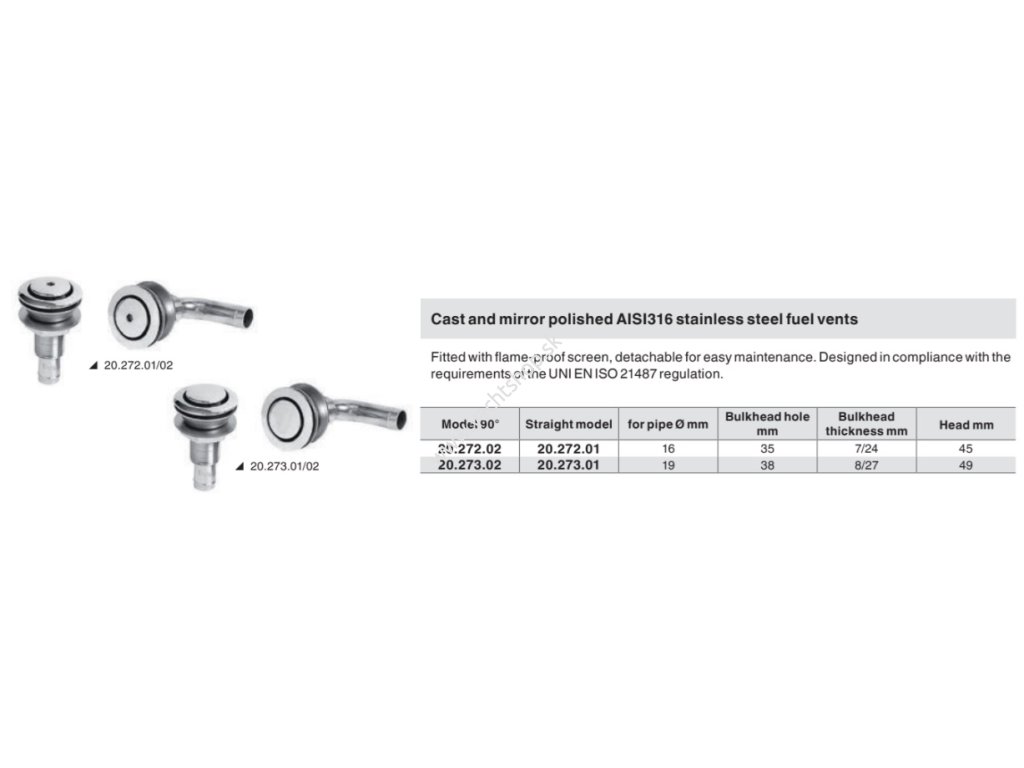 OSCULATI Priamy palivový ventil leštené zrkadlo AISI 316 45 mm Straight fuel vent mirror polished AISI 316 45 mm