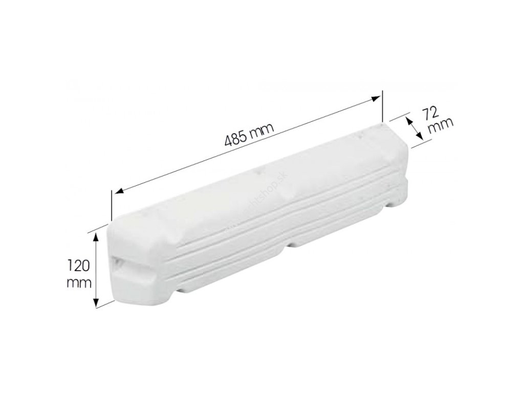 Krídlo z bieleho PVC odolného voči UV žiareniu. Ľahko sa inštaluje, pripevňuje sa priamo na okraje pontónov alebo móla, čím sa zabráni náhodnému poškodeniu konštrukcie alebo lode v dôsledku nesprávnych manévrov alebo rozbúrených morských podmienok. Určené na upevnenie na rovný povrch. Upevňuje sa pomocou 8 skrutiek Ø 7 mm (nie sú súčasťou dodávky). Nie je nafukovací.Dodatočné parametre