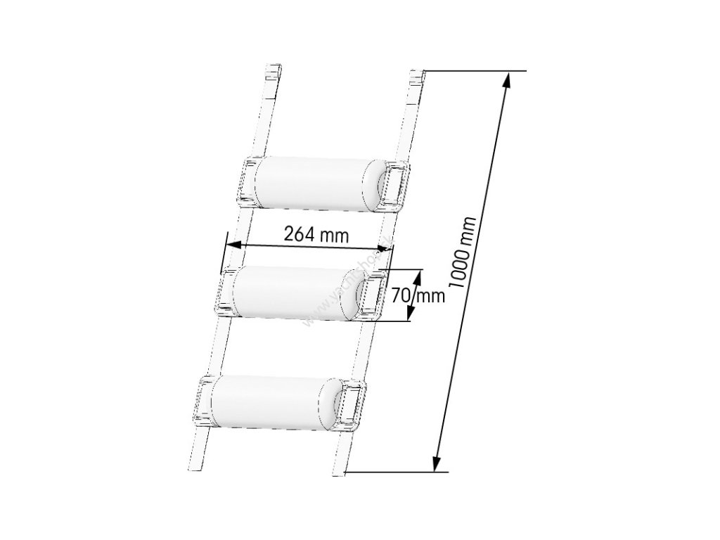 z PVC, odolné voči UV žiareniu, 3 malé polmesiacovité blatníky, umiestnené pozdĺž 1 m dlhého popruhu so slučkou na všetkých 4 koncoch. Dokonale sa prispôsobuje rúrkovým tvarom RIB. Ideálne aj na ochranu trupu alebo trubiek RIB pri prívese.Dodatočné parametre
