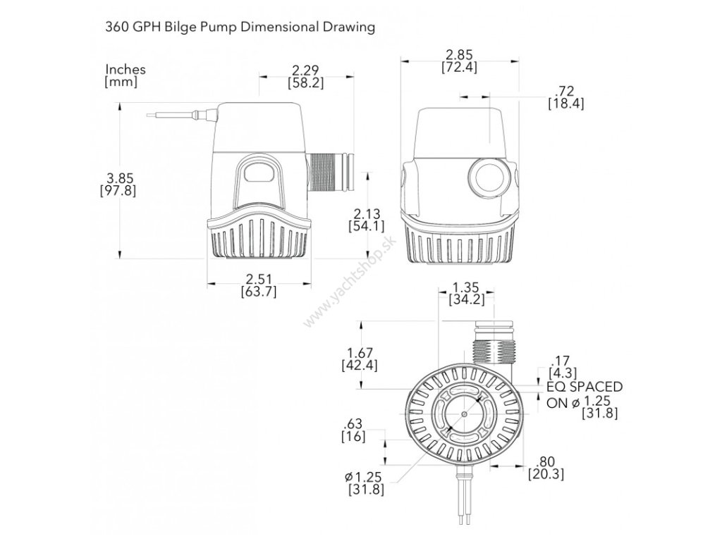 Nová generácia ponorných čerpadiel RULE. Vďaka skrytému prívodu vzduchu v telese čerpadla a spätnému ventilu zabraňujú spätnému toku vody a tvorbe vzduchových bublín v potrubí vodovodného systému. Ideálne pre malé lode. 1 363 l/h (360 GPH) bez spätného tlaku, pri 2 m výške 567 l/h (150 GPH) Spätný ventil na výstupe ako ochrana proti spätnému toku vody Skrutkovací výstup na jednoduchú inštaláciu a údržbu Pripojenie: prípojka na potrubie 19 mm (3/4") (vnútorný priemer) alebo 19 mm (3/4") NPSM.Spotreba prúdu max. 2,4 A (13,6 V), poistka 4ADozmery: Výška 10,0 cm / šírka 7,4 cm / hĺbka 6,4 cm (bez vývodu) (ex codice FNI 1616180)Dodatočné parametre