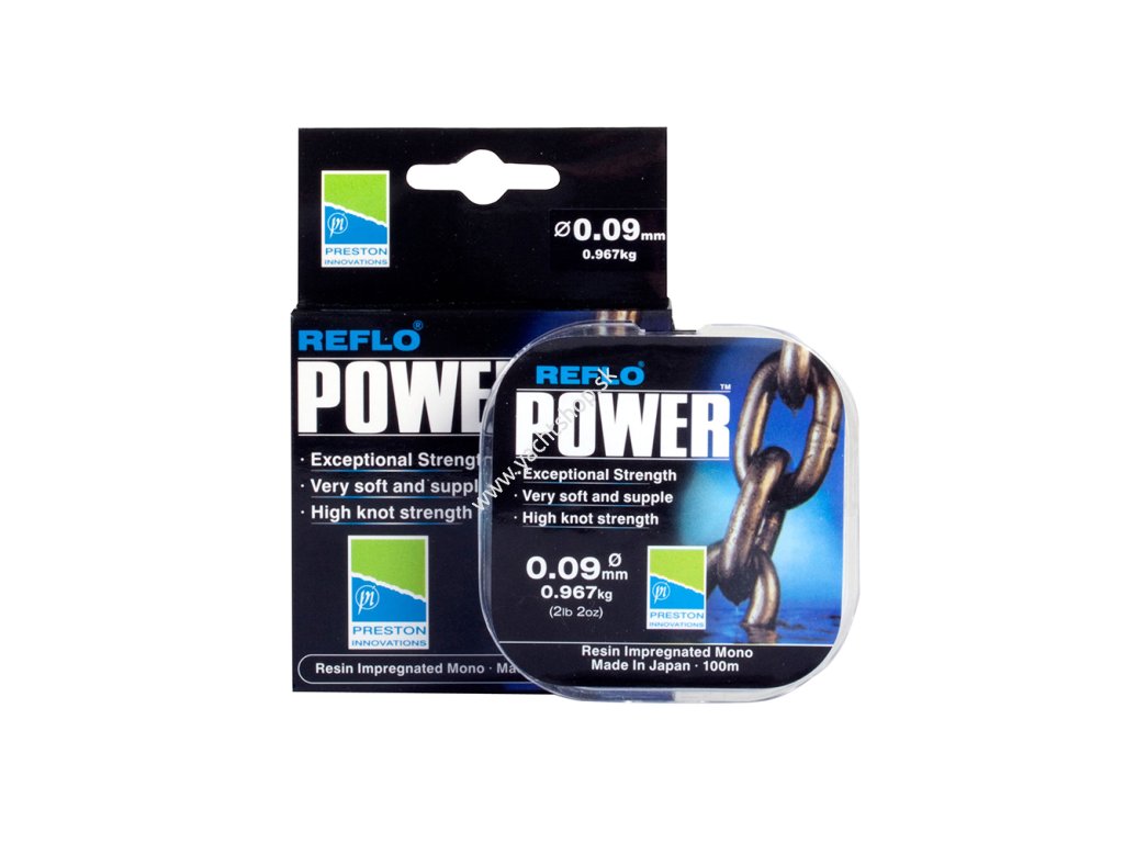Vlasce REFLO od spoločnosti Preston Innovations sú jedny z technologicky najvyspelejších dostupných vlascov, ktoré boli navrhnuté a vybrané špeciálne pre rybolov v Spojenom kráľovstve a Európe. Všetky naše vlasce sú testované na maximálny výkon a spoľahlivosť.Najrýchlejšie predávaný vlasec REFLO Power je výnimočne silný, pružný a čistý. Je navrhnutý so zabudovanou elasticitou, čo z neho robí vynikajúci vlasec aj pre prívlačové montáže. REFLO Power je k dispozícii v 14 veľkostiach a rýchlo sa stal prvou voľbou vlasca na háčik a montáž pre špičkových rybárov.REFLO Power je perfektný vlasec na háčik a montáž na prút. Dostupný je v ťažších veľkostiach 0,24 mm a 0,26 mm, aby vyhovoval moderným zápasovým metódam a veľkosti rýb.REFLO Power je výnimočne silný, pružný a číry. Vďaka zabudovanej pružnosti je tiež vynikajúcim vlascom pre prívlač na udice. Šnúra REFLO POWER je dostupná v mnohých veľkostiach a rýchlo sa stala prvou voľbou dĺžky háčika pre špičkových matchových rybárov. Je to najpredávanejší vlasec na háčik v Spojenom kráľovstve a je tiež ideálny na montáž, preto ho predávame na 100 m cievkach. Číry a pružný REFLO® Power je na svoj priemer neuveriteľne pevný a úplne spoľahlivý. Je to tiež pevný vlasec, ktorý sa dobre uzlí a vydrží nápor pri love veľkých záťaží. Zábery sa na ňom dajú premiestňovať bez väčších škodlivých účinkov. Keď to zhrnieme, REFLO® Power ponúka perfektný kompromis medzi pevnosťou priemerom a húževnatosťou. A ako dôkaz jeho výkonu a spoľahlivosti aj po viac ako 10 rokoch na trhu je stále najpredávanejším vlascom.Dodatočné parametre