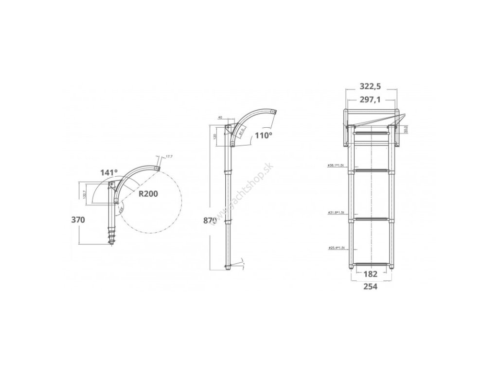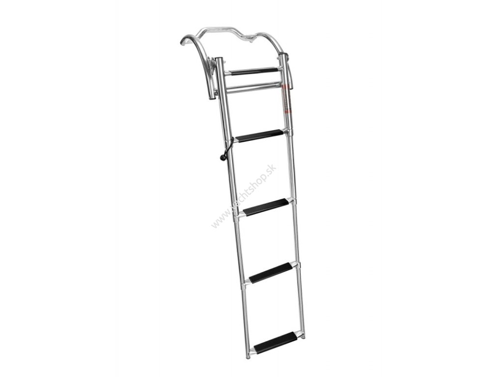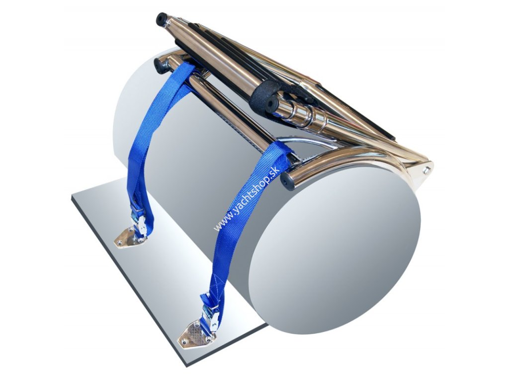 Rebrík pre nafukovacie člnyz nehrdzavejúcej ocele AISI 316, teleskopický a sklopný.Stupne z protišmykového čierneho plastu. Vybavené vystúpenou rukoväťou. K podlahe sa pripevňuje pomocou dvoch platní (nie sú súčasťou balenia) a dvoch nastaviteľných samosvorných praciek z nehrdzavejúcej ocele. Pre rúrky do Ø mm. 500.Dodatočné parametre