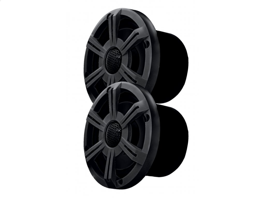 Pár reproduktorov Bluetooth z čierneho plastu s ochranou proti UV žiareniu, vodotesné podľa IP66. Pripojiteľné k smartfónu. Dosah Bluetooth mt 8. Napájanie 12 V. Výkon max. 80 W. Impedancia Ohm 4. Vonkajší Ø 180 mm. Zapustený Ø 132 mm. Hĺbka 90 mm.Dodatočné parametre