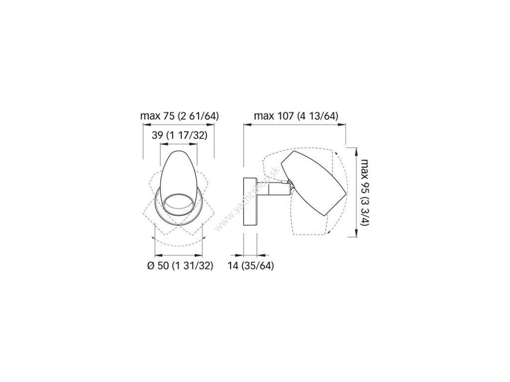 Nastaviteľný reflektor s montážou na stenu, nastaviteľný, pochrómovaný hliník. teplé biele svetlo (140 lumenov). s vypínačom. citlivý na polaritu.Dodatočné parametre