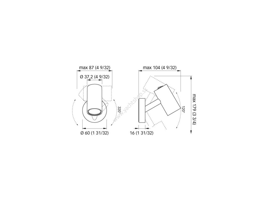 Nastaviteľný reflektor na stenu, nastaviteľný, biely kompozitný materiál.Teplé biele svetlo (140 lumenov). S vypínačom. Citlivý na polaritu.Dodatočné parametre