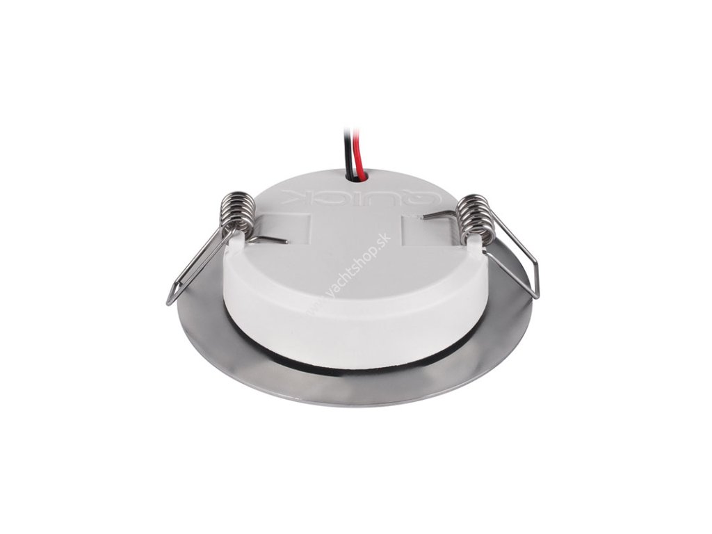 Vodotesný reflektor s krytím IP65 s 2 LED diódami (100 lumenov), vysokým jasom, teplým bielym svetlom s kruhovým rámom z nehrdzavejúcej ocele AISI 316, s dotykovým tlačidlom zapnutia/vypnutia a regulátorom intenzity. Citlivý na polaritu. Upevnenie pomocou pružín.Dodatočné parametre