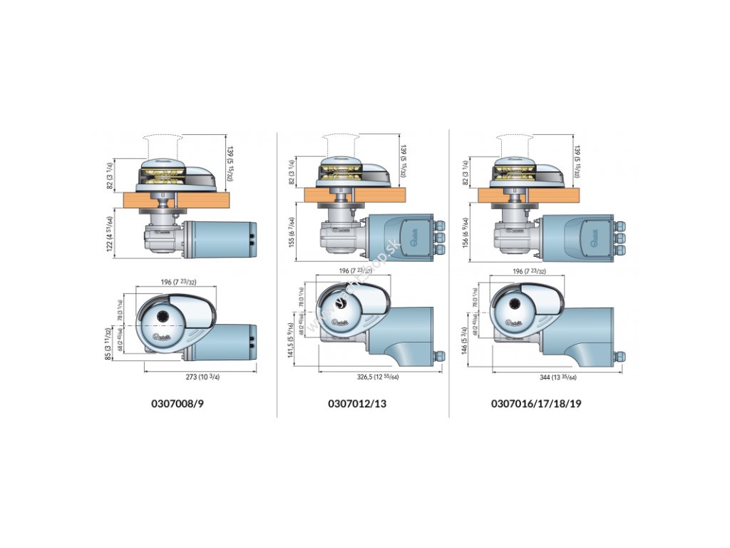 Vertikálne navijaky AISI 316 Základňa z nehrdzavejúcej ocele, s bubnom a bez bubna. Lano a reťaz na jednom závese, integrovaný snímač a magnet pre počítadlo reťaze, manuálny systém Free-Fall. Dodávané s tlakovou pákou a kontrolným vekom, vodotesným motorom s krytím IP67 a prevodovkou z eloxovaného hliníka. komplet s ovládacou skrinkou a rukoväťou.Dodatočné parametre