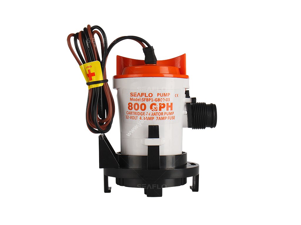 SEAFLO 03 Series 800GPH Seaflo Bilge Pump. Rovnako ako naša séria 02, aj táto montážna konzola umožňuje vertikálnu montáž čerpadla. Tento model navyše umožňuje maximálnu flexibilitu vďaka odnímateľnej kazete pre ľahkú údržbu. Štandardné pripojenie je závitové, ale jeho súčasťou sú aj adaptéry na nastrčenie hadice, aby ste boli flexibilní k vašim konkrétnym potrebám.