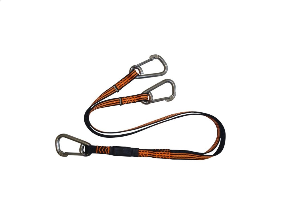 3-bodové bezpečnostné lano pre záchranné vesty SECUMAR s postrojom, s karabínami WICHARD a indikátorom preťaženia, čierno-oranžové, schválené podľa DIN EN ISO 12401.